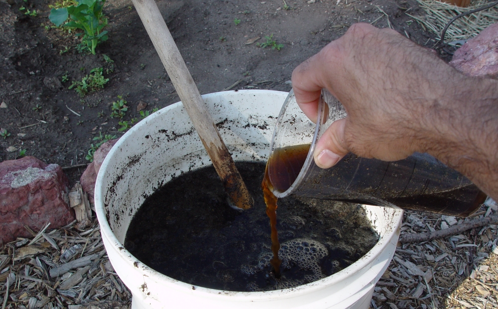 - Quite large holes are dug in the right places, a liter can of compost is added to each of them, mixed with the ground, watered and holes are formed according to the size of the pots.