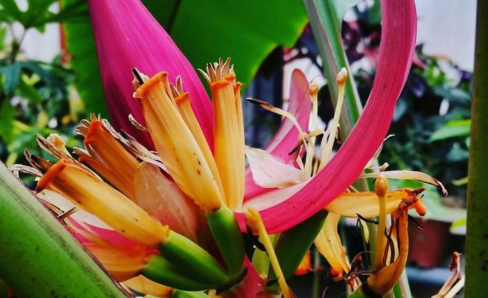 - Pink Banana (Musa Velutina) - grows up to 1 m in height. It begins to bloom in the second year of growth with miniature pink inflorescences. Its fruits are of the same color, collected in bunches of 8-9 pieces and stuffed with seeds.