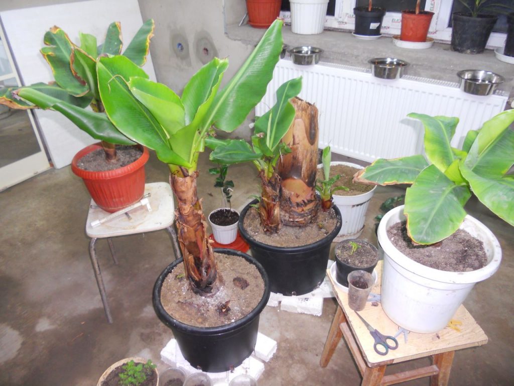 During the wintering of a banana, the room temperature should not drop below +10 ° C. If it drops to zero, then the plant will inevitably die. Shortly before the onset of winter, the banana leaves are pruned and transferred to a place where it is cool and light. Do not place the plant near batteries.