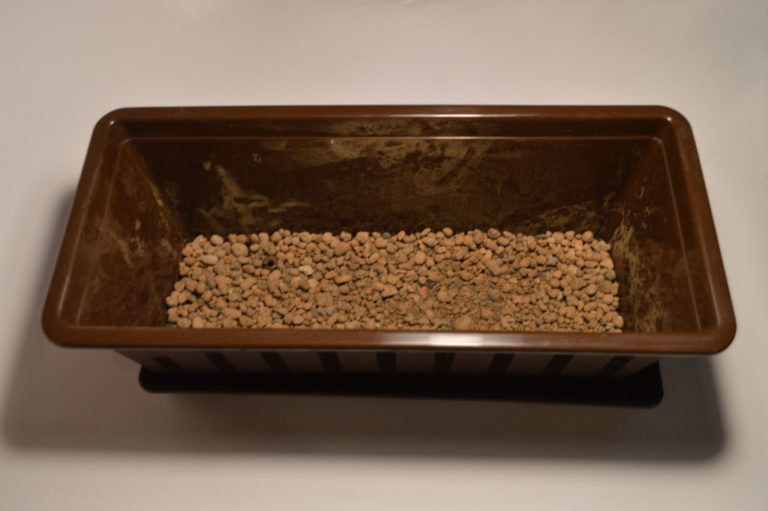 - A drainage layer (1.5–2 cm) of broken shards, pebbles or expanded clay is laid at the bottom of the planting container.