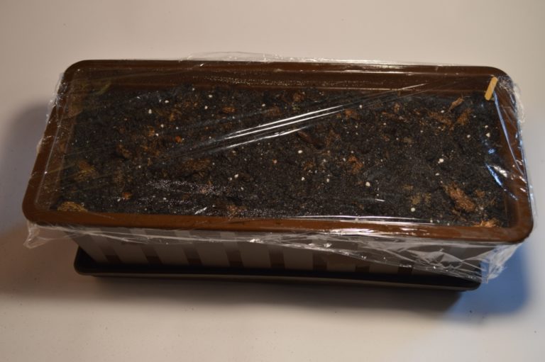 - The container is covered with a polyethylene film or transparent glass to create the effect of a mini-greenhouse, then put it in a warm and well-lit place without drafts (for example, on the southern window sill).