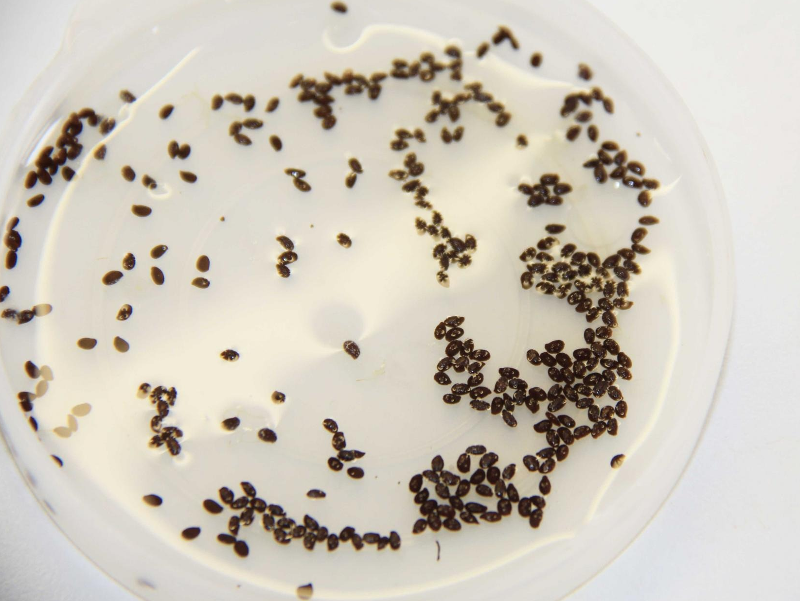 - The resulting mass is poured with water for several hours, while periodically mixing the contents and changing the water. The seeds that float to the surface are collected.