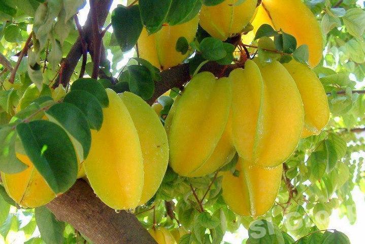 A tropical star growing in southern Asia. It tastes sour or sweet. Unusual fruits look very beautiful on a tree, as if emitting a yellow light.