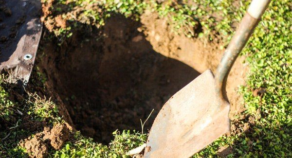 - At the bottom of the planting pit, we make a small tubercle and drive in a peg, to which we will subsequently tie the seedling.