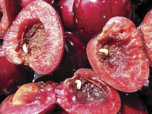 - Cherry fly larvae eat juicy cherry flesh