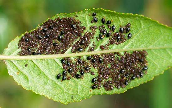 | Aphid | Massive clusters of small black insects appear on young leaves and shoots. | Spray the tree with a solution of Inta-Vir or Decis immediately after the pest appears. |