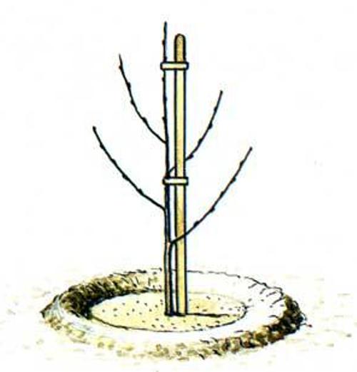 The seedling is watered into a hole dug around the trunk (2 buckets per plant) and immediately mulched. It is recommended to tie a fragile tree to a stake-support so that the bole is even and the wind does not break it.