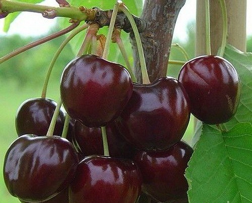 Fruits are round, slightly tapering at the top, dark red. The bone is small. The mass of one berry ranges from 7-8 g. The pulp is juicy, sweet, dark red in color. The pulp contains slightly more than 13% dry matter, almost 10% sugar, 9 mg /% vitamin C, there is also iron, copper, vitamin PP and carotene. The berries have high tasting characteristics and are well transported. They are very tasty fresh, at the same time they retain their color and aroma during canning.