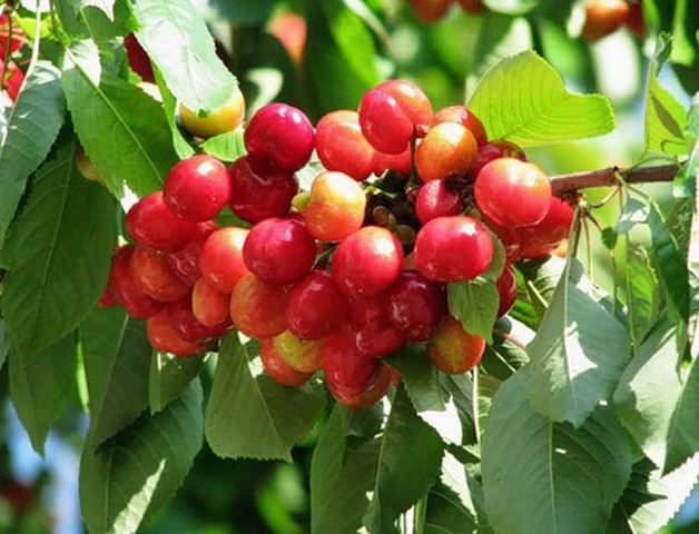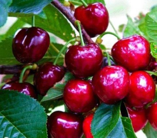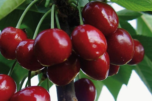 Berries weighing 5-7.5 g, dark scarlet with lighter subcutaneous dots. The stone is small, it is reluctantly separated from the pulp. The fruits are sweet, but "cartilage" is clearly felt in the pulp. However, the taste is rated 4.9 out of five. The crop ripens in the first decade of August. 18-25 kg of berries are removed from a mature tree. The first fruiting is five years after planting.