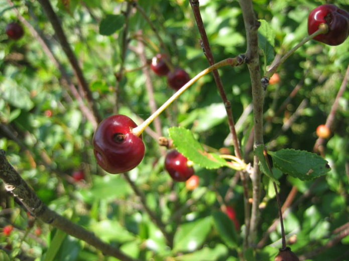 Malyshka, a small and very easy-to-grow variety that yields like a whole tree, was bred using an antipka rootstock. (What is grafted, a stalk or bud of the desired variety, is called a scion, and the one where it is grafted is called a stock.) Thanks to this stock, the cherry plant has become more winter-hardy and adapted to Russian weather conditions.