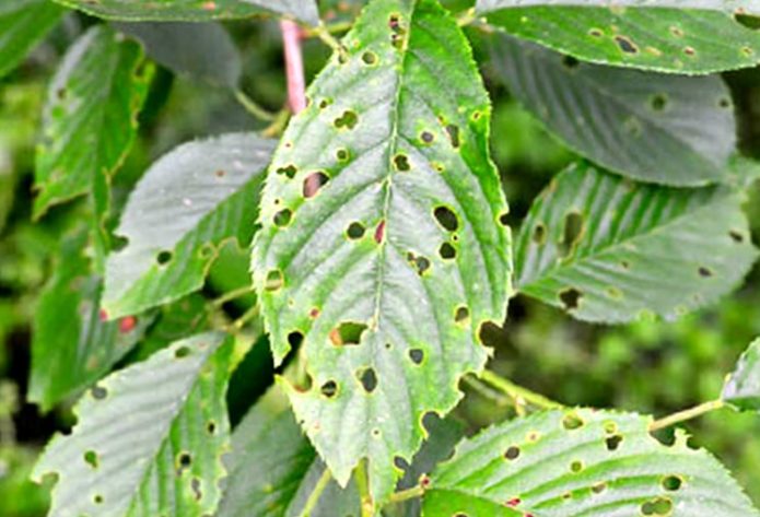 - Clasterosporium disease can be easily confused with damage from leaf-eating insects