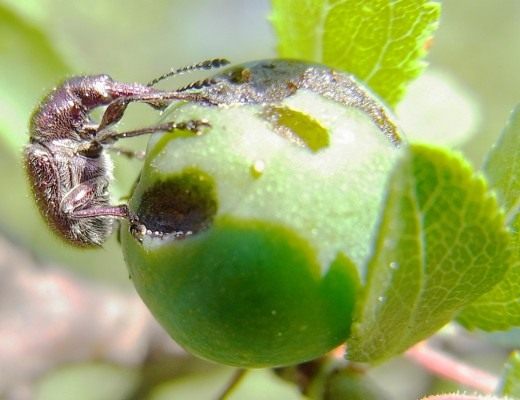 - The pest eats away the buds, buds and ovaries, and the larvae deposited in the seeds damage the berries