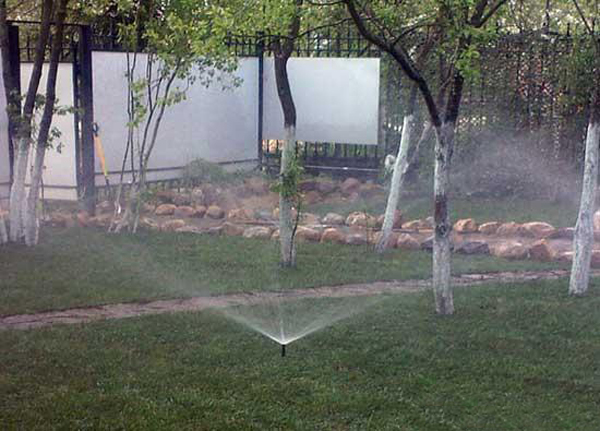 - For irrigation of fruit trees with sprinkling, hoses with sprinklers are used, while not only the roots, but also the crown are moistened, which is especially important in hot dry weather.