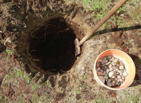 - A fertile soil layer in the form of a cone is poured into the hole.