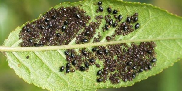 | Slimy sawfly | The larvae gnaw the pulp of the leaf, leaving only the veins. |