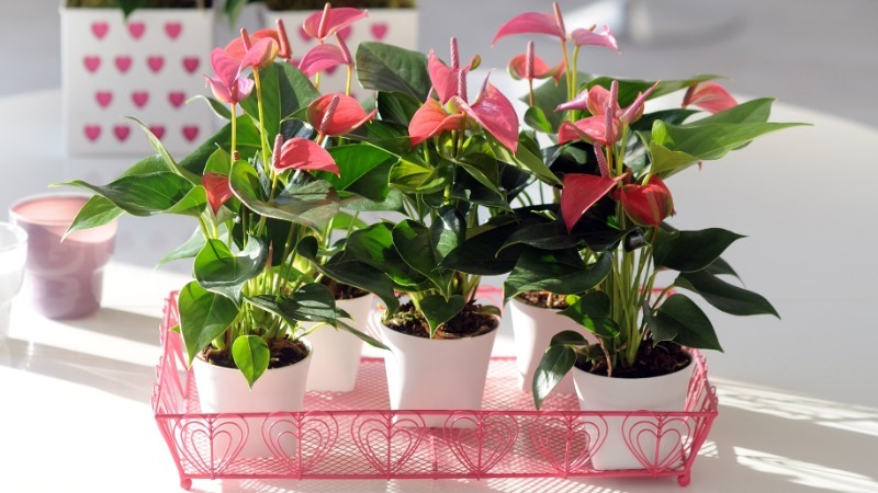 Anthurium is a spectacular plant with glossy leaves and large flowers. The flower is thermophilic, but in the open sun it can die.