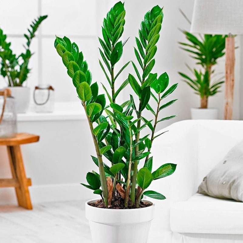 Caring for zamioculcas at home is simple. This species blooms very rarely, but if this happens, then the buds that appear symbolize good luck. To ensure the most comfortable conditions, it is worth not allowing the air temperature to drop below + 16 ° C and not above + 28 ° C. Loose soil with good drainage, annual spring repotting will ensure good growth of greenery. It should be watered up to 2 times a week in summer and 1 time in 15 days in winter.