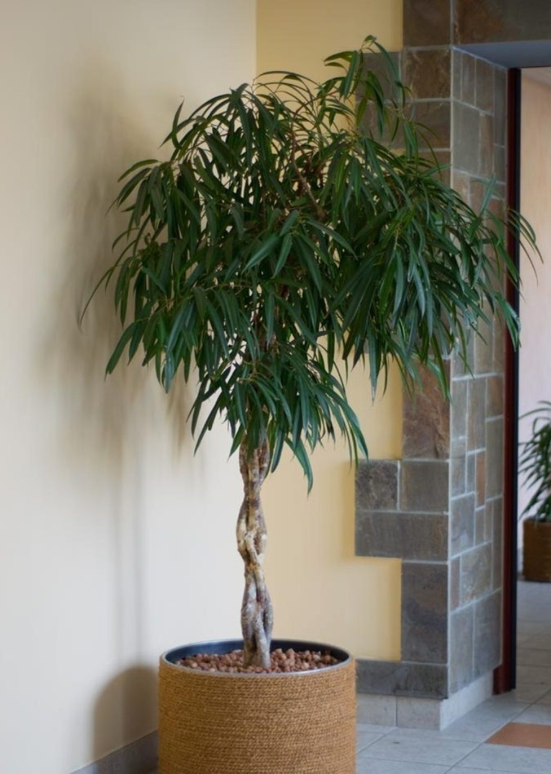 In a residential or office space of a large area, a traditional palm tree will be appropriate. Its wide leaves with cuts are reminiscent of tropical climates and are therefore particularly well suited to Mediterranean, African interior design.