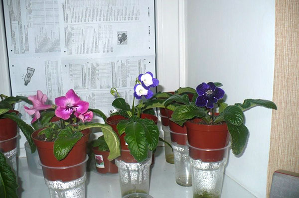 Very often, failures in growing streptocarpus are associated with improper soil moisture. If the plant is forgotten to water, then its leaves will quickly restore elasticity as soon as they receive moisture. True, the drooping flowers will have to be cut, they are lost. If the flower is excessively moisturized, then it can become seriously ill and even die. Most hybrids have few leaves, they evaporate little moisture, so the plants should be watered sparingly and only with settled water. Watering can be done in various ways: