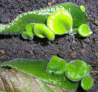 After about two months, babies are formed in the area of the cross veins. When young plants reach two to three centimeters in size (this will happen in another 1.5-2 months), the insulation is removed and the young are transplanted into separate containers.