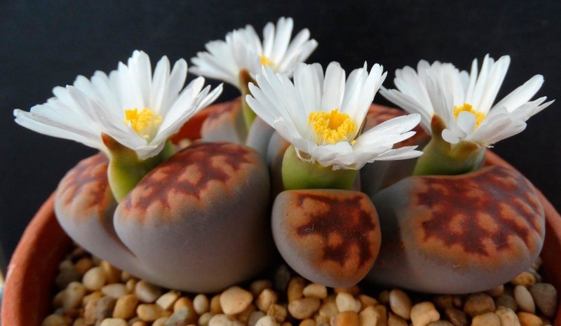 In nature, 37 of its species are known and almost all of them can grow successfully at home. Lithops tolerate drought and direct sunlight well. Watering is the most moderate, only when the soil is completely dry, otherwise the plant may die.