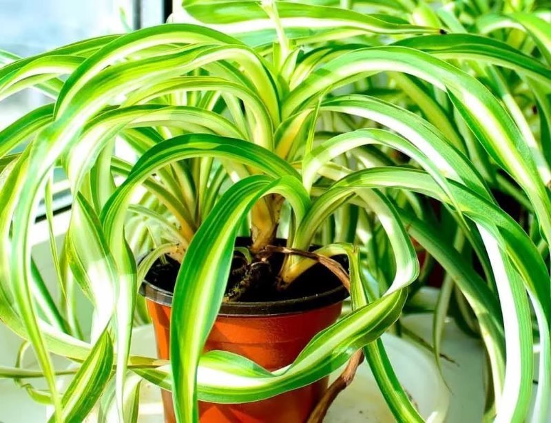 It's a pretty popular indoor culture that looks amazing and can purify the air. The plant tolerates strong drafts, high temperatures and constant changes in humidity. Chlorophytum does not need constant and strong watering, and in spring it blooms with white buds.