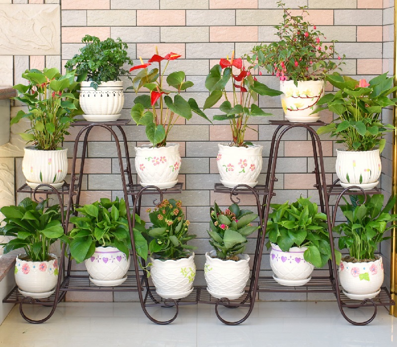 A picturesque "tree" can be made from flower pots. The role of the trunk will be performed by a forged rack. Filled with flowers or greenery, it looks gorgeous in any space of the apartment, but it is most logical to use a window sill or floor.