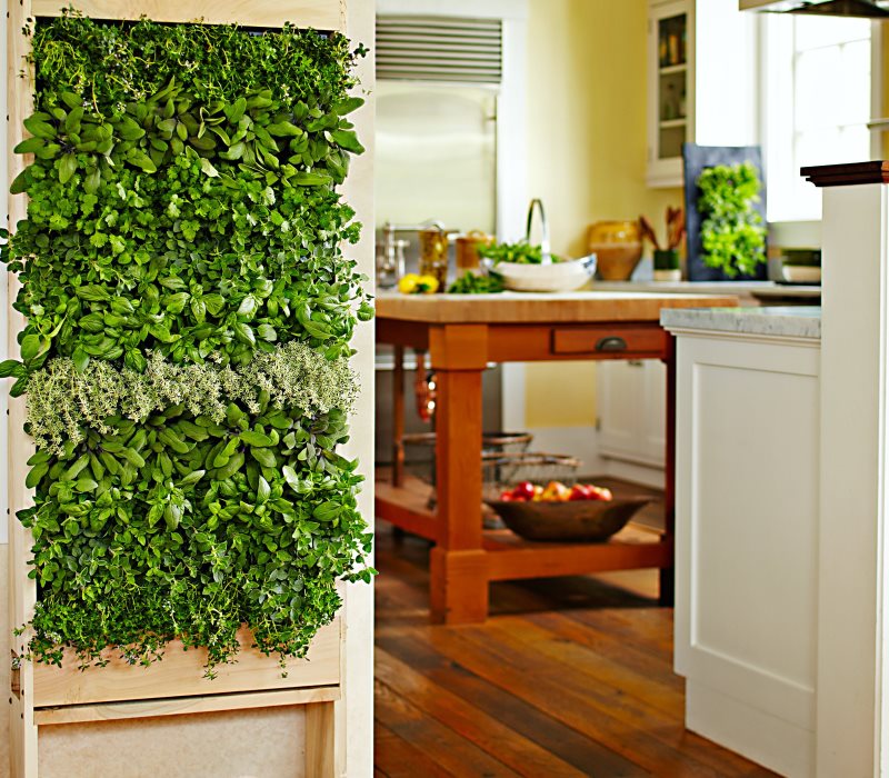 Home beds on several floors will allow you to grow all kinds of herbs all year round. In addition to the classic dill, parsley, lettuce and onions, you can surprise your household with arugula, basil, radish, coriander, thyme, rosemary and mustard. In addition, wheat can be grown on the kitchen plantation, which is used to make salads and whitgrass, a healthy juice from its sprouts.