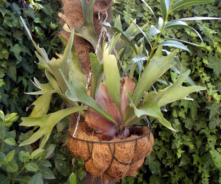 | Lighting | This type of fern does not tolerate direct sunlight: fronds in such conditions get burned and die. But it is also impossible to completely leave the Platizerium without light: it must be grown in a place that is only slightly shaded. With a lack of sunlight, the fern is often highlighted, especially in showcases, where it looks very impressive. |