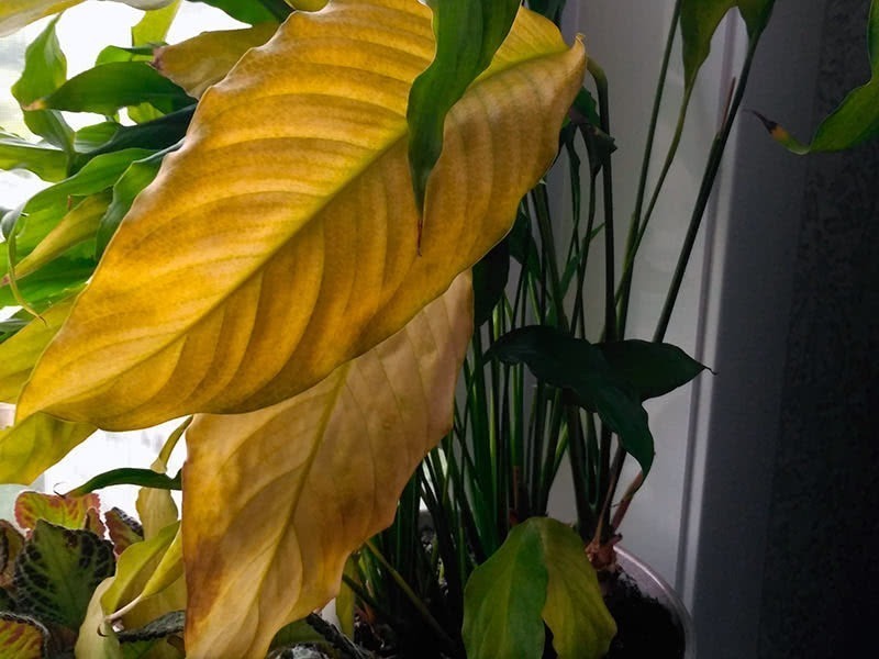If the leaves turn yellow in other plant species, then the cause may be a draft, temperature drops, or direct sunlight. Indoor flowers do not tolerate cold air currents. They are not adapted to the constant movement of air masses. If the plant is standing under an air conditioner or near a window with which the room is ventilated, it must be removed to another place.