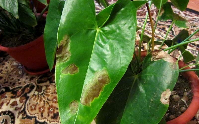 Sometimes dry brown spots appear on the plant. This damage can be caused by the following reasons: