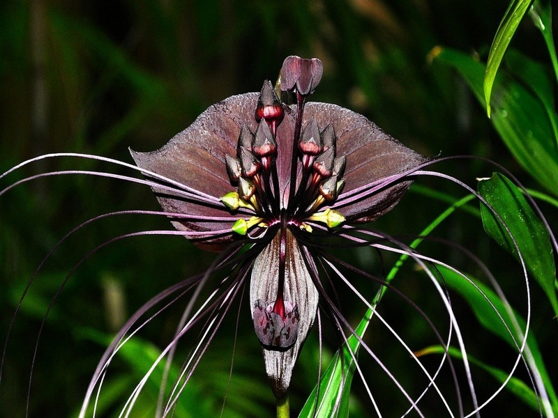The Chinese mouse flower is extremely rare in nature. It is found only in limited areas of Southeast Asia. This plant has extremely unusual flowers. They resemble a toothed monster with a long beard. On close inspection, the buds look like bats sleeping upside down. This plant is listed in the Red Book. It is impossible to grow it in an apartment, since it is difficult to create the conditions it needs.