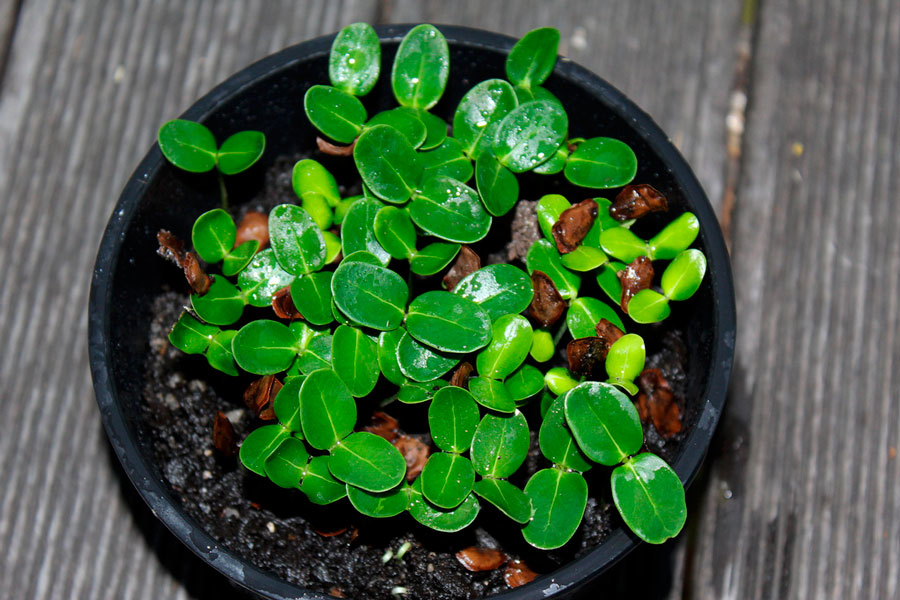 It can take from 2 weeks to 2 months for seeds to germinate. During this period, it is necessary to ventilate the greenhouse every day and irrigate the soil as needed from a spray bottle. After the first leaves appear on seedlings, they are transplanted into separate containers. The grown and matured seedlings are placed in permanent pots and provide them with proper care.