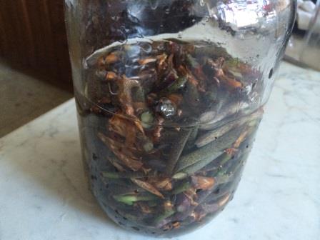 - Chop the green parts of the plant and pour 1 liter of boiling water.
