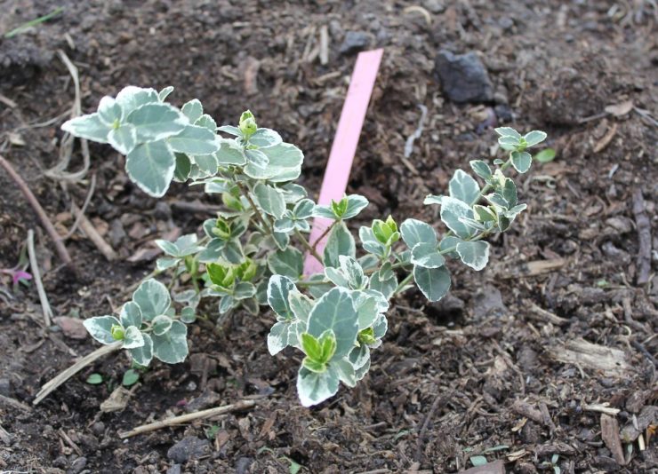 - Dig holes two weeks before planting. The size of the hole should be 1.5 times the size of the root system of the seedling. When euonymus is planted to create a hedge, a trench of the desired shape is dug and a place is marked for each bush.