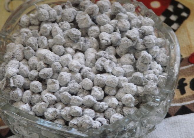 - After all the procedures, the chokeberry is generously sprinkled with powdered sugar and folded for storage in containers that can be sealed.