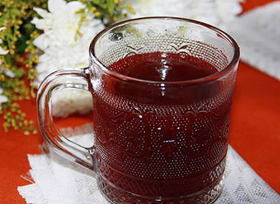 - The resulting juice is measured in a liter jar and the appropriate amount of sugar is poured into it, stirred and heated for 10 minutes on fire. Then the syrup is poured into a sterile container and covered with lids. You can store the workpiece at room temperature, since the high sugar content acts as a preservative.
