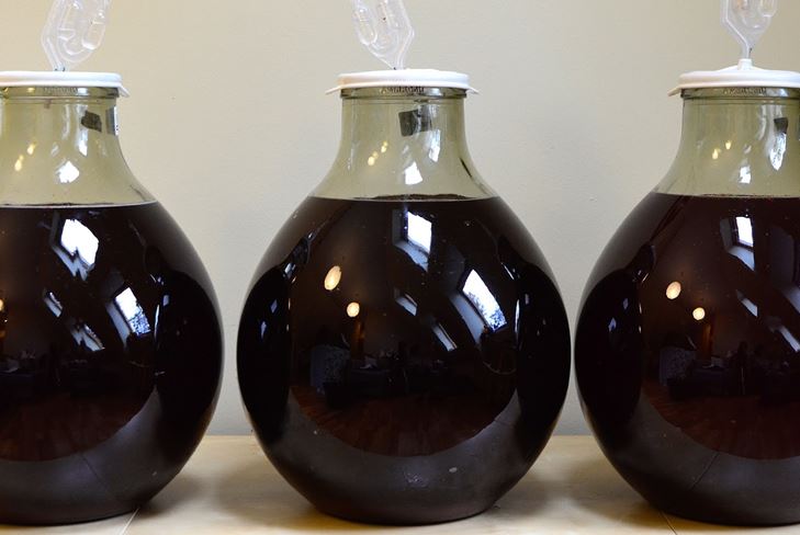- During this period, they monitor the ascent of berries to the surface. Once they collect in the top layer, pick them up by hand and squeeze the juice out of them. The squeezed berries are not thrown away, and all the juice (both remaining in the vessel and obtained during pressing) is filtered through cheesecloth or a colander and poured into a vessel, where it will ferment, filling less than half of it. A water seal is installed on the container, or a rubber glove is put on with one pierced finger, the fermentation container is placed in a dark place with room temperature.