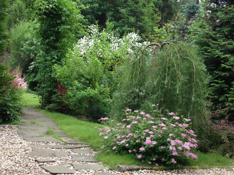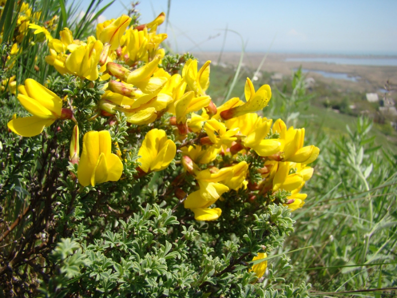 It is a small bushes no more than 1 m high. The bark is golden and smooth, the flowers are yellow and do not fade all summer.
