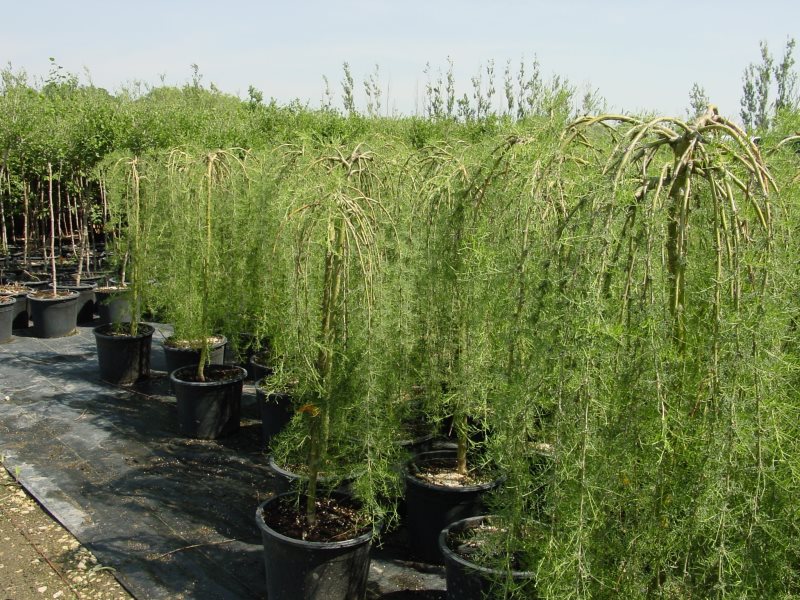 It has an unusual crown, branches from which hang down to the very ground. Flowers are large, yellow, collected in a bunch. Bloom after all the foliage has blossomed.