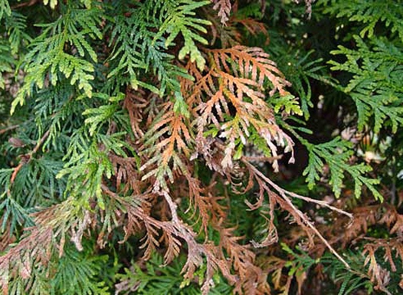 - Fusarium-infected thuja seems to fade for no apparent reason