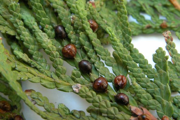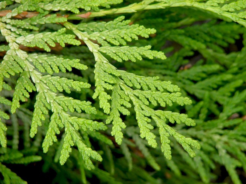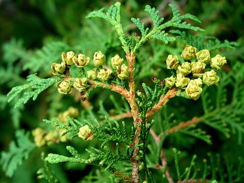 Lime-colored flowers and dull red or brick thuja cones are hidden in a dense crown. And some breeding varieties do not bloom at all. All thujas are characterized by a light, recognizable "cypress" aroma. An essential oil with a similar smell is made from cones. It increases the general tone of the body, helps to quickly restore strength, increase stress resistance and endurance to physical activity, and helps to concentrate. It is also useful for the treatment of many skin diseases.