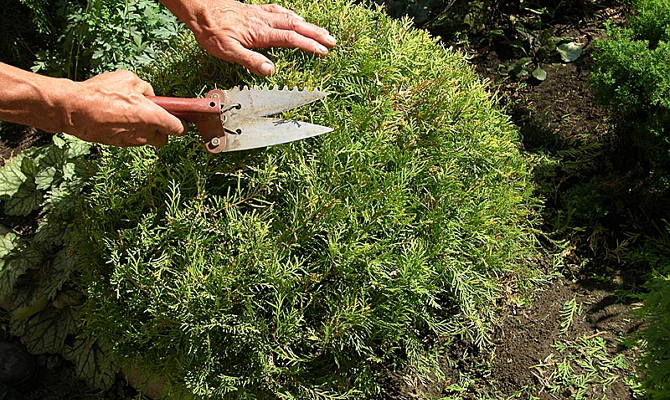 The plant tolerates the procedure very well, but still you should not be too zealous. No more than a third of the green mass is removed at a time. Pruning can be done several times a year. In this case, the bulk of the work is usually left for the fall or late summer. In the spring, sanitary pruning is carried out, getting rid of shoots that have frozen or broken under the weight of snow. The outside temperature must be above zero. Still need to be in time before the growth buds "wake up".