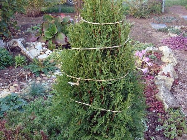It is strongly not recommended to bend thuja branches to the ground in preparation for winter. It is not a fact that in spring the plant will be able to restore its original shape.