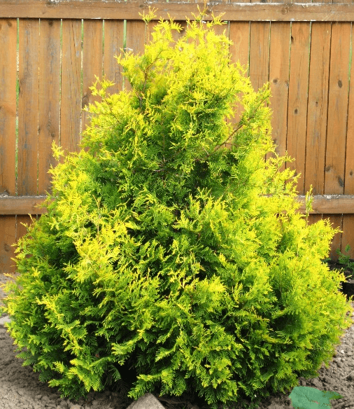 - Sunkist. A very dense and large shrub in the form of an almost regular cone. The height reaches 3-5 m, the diameter of the base is 2-4 m. In young specimens, the needles are golden, then it gradually changes its color to lemon. In winter it turns bronze. In order for the plant to remain effective, bright lighting is especially important.
