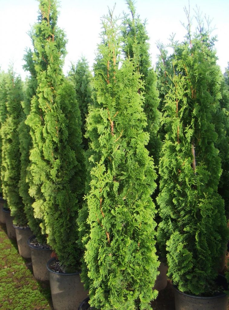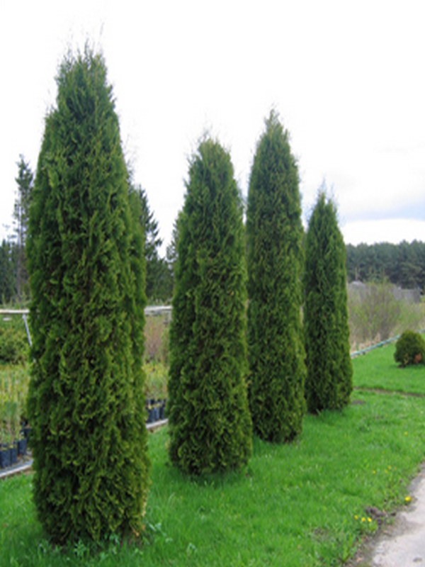 - Smagard. Another very common variety. Young trees are slender, with a pyramidal crown. Then they seem to "settle", become squat. The growth rate gradually slows down. Height does not exceed 5–7 m. The tree is evergreen. Emeralds do not differ in very high frost resistance; where winters are severe and with little snow, even adult specimens need shelter for the winter.