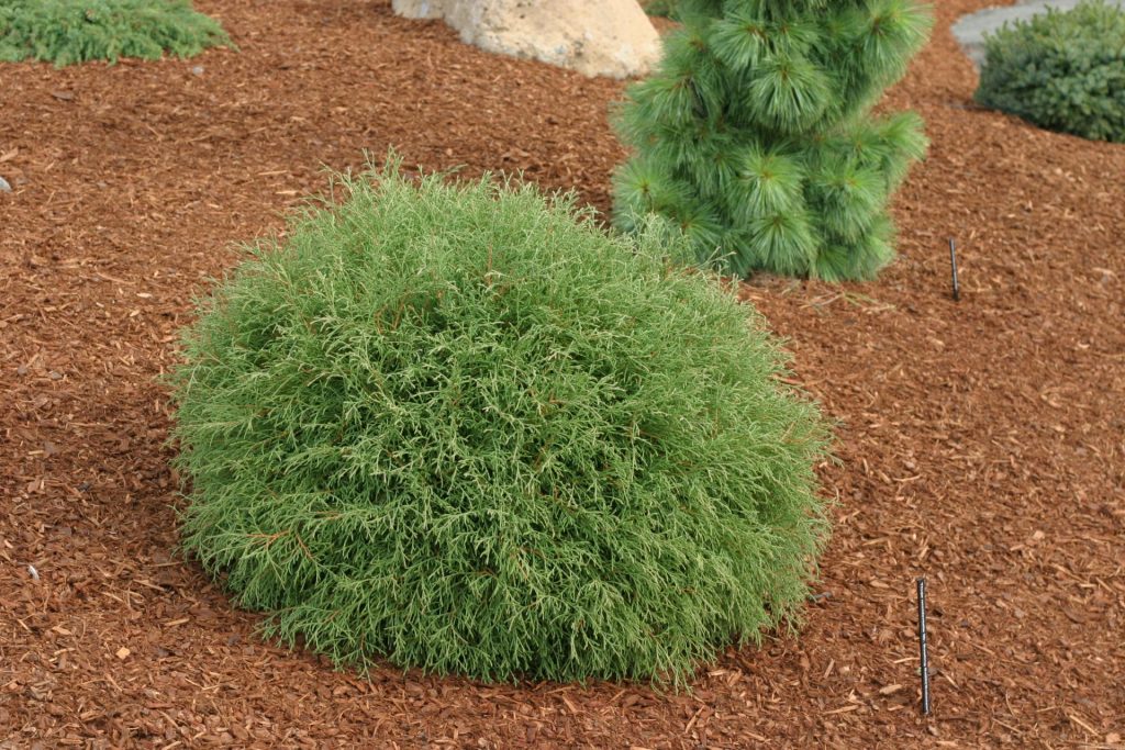 - Mr Bowling Ball. A dwarf spherical shrub with a diameter of 0.6-0.9 m with a seemingly openwork crown. This is especially noticeable in the "lace" shadow. The needles are grayish-green, almost threadlike. In winter it turns bronze.