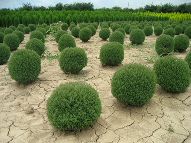 - Globosa. A shrub in the form of an almost regular ball (height - 1–1.2 m, girth - about 1 m). The needles are glossy, dark green. In winter it changes color to dull brown or grayish. More demanding than other varieties of watering, prefers partial shade. In the Nana variety, the height does not exceed 30 cm. In the cold, its needles turn gray.