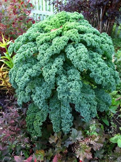 - Red-purple corrugated leaves of ornamental cabbage Robin, which grows up to one and a half meters in height, look spectacular