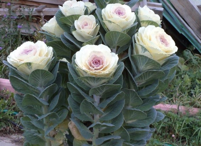 Any varieties of tall miracle cabbage are perfect for decorating a terrace, gazebo, mixborder.